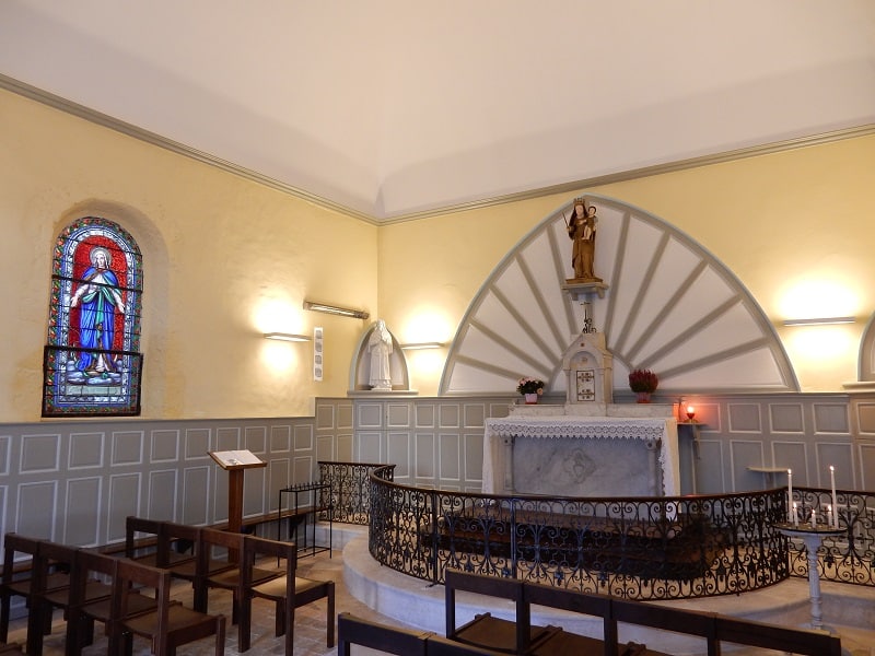 Located on the corner of Place de la Victoire, the chapel is home to a 17th-century gilded wooden statue of the Virgin Mary holding her child in her arms and in her right hand a staff, probably the remnant of a flowering reed. The sculpture is dear to the hearts of the people of Mareuillais, who solemnly celebrate its feast day on 8 September every year.