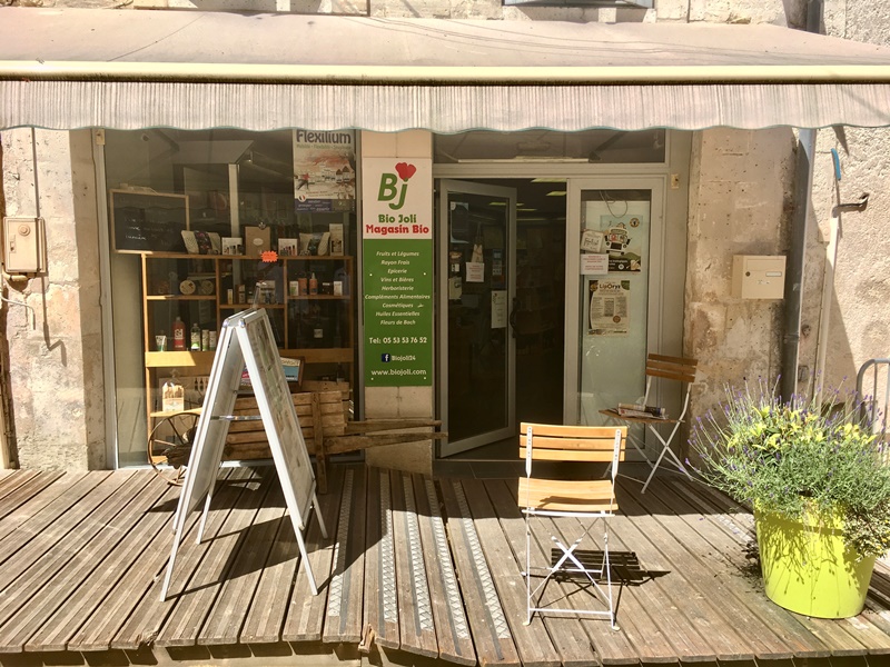 La tienda ecológica BIO JOLI ofrece fruta y verdura fresca durante todo el año. Una amplia gama de productos locales como aceites, mostazas, salsas, quesos, café y vino, sin olvidar el chocolate. También disponemos de plantas aromáticas y medicinales, complementos alimenticios y cosméticos locales. Vinos biodinámicos y naturales.