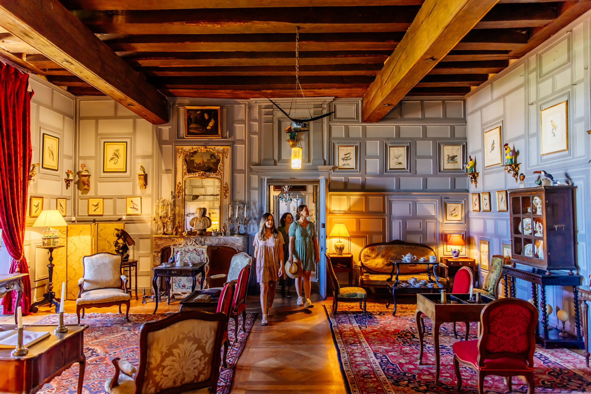 Bâti sur un promontoire qui domine la ville de Chalais, le château, berceau de la famille des Talleyrand-Périgord, est imposant. L’accès à la cour d’honneur se fait par un pont-levis du XVIème siècle, un des rares encore en fonction en France. Le corps principal du logis d’architecture Renaissance, flanqué de pavillons en saillie, attire l’attention par sa façade très XVIIème siècle et par ses hauts toits d’ardoise, rares en Charente. Enfin une haute tour carrée du XIVème avec mâchicoulis domine la vallée. La visite du château vous entraînera sur les pas des Talleyrand-Périgord : la galerie d’apparat, le bel escalier qui conduit au salon de réception des Princes de Chalais, la salle à manger et son plafond original, le salon aux oiseaux, la salle au trésor, la chambre du prince, la petite chapelle édifiée à la suite d’un drame familial… et historique : l’histoire d’une famille et la…