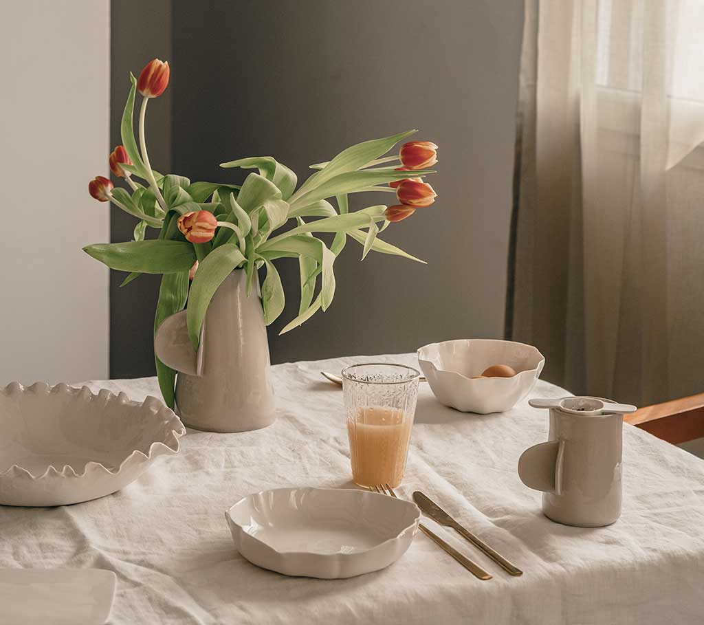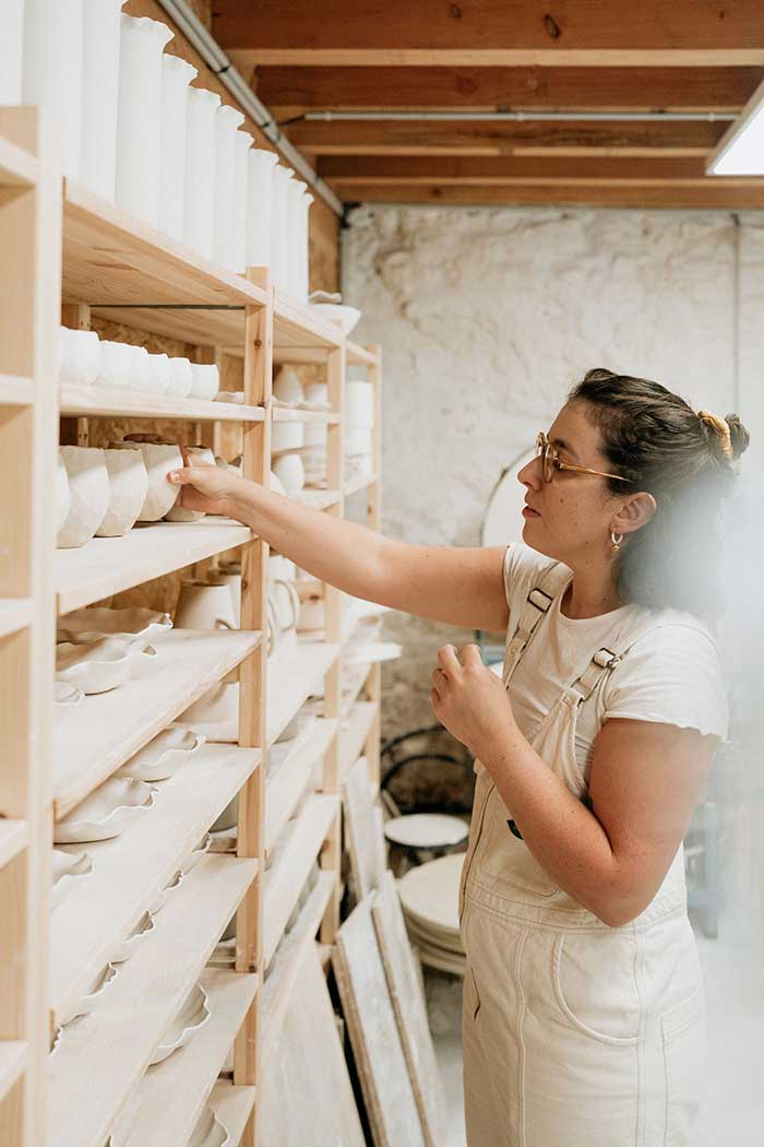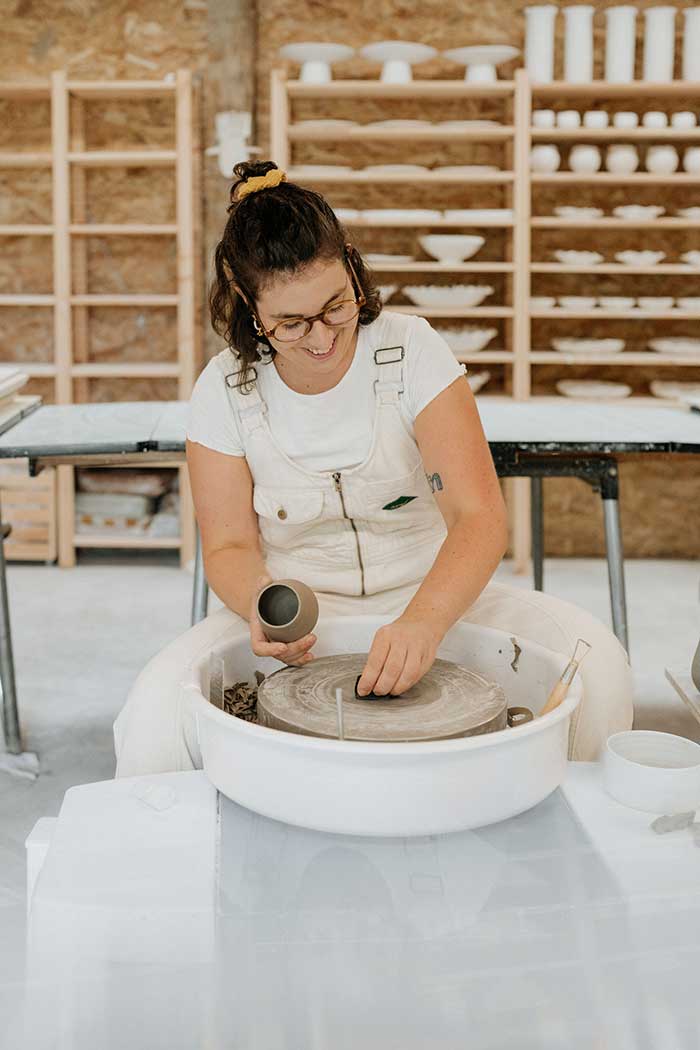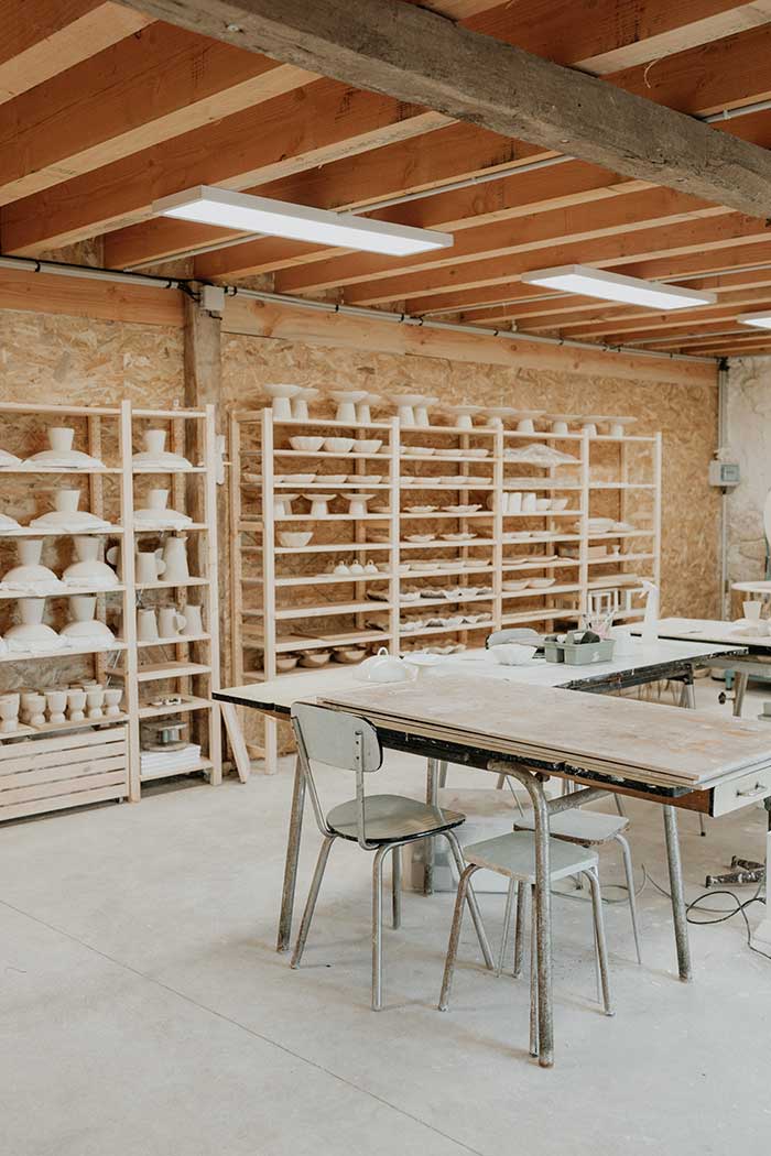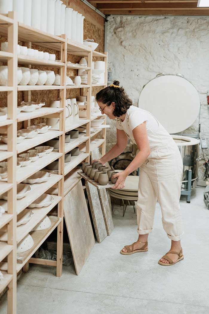 Dans sa recherche de formes simples, Eloïse crée des objets en grès et en porcelaine, avec le plus de finesse possible.